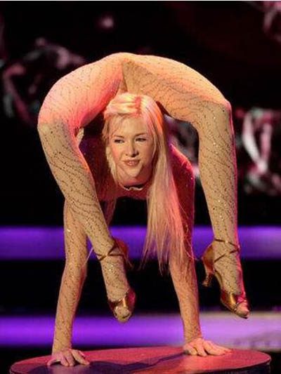 Zlata是世界上公认的世界上最软的人,看上面的“柔软”照片,这还真不是一般人能够顺便完成的呢。身高175的她能够完成这样高难度的动作确实是很不可思议啊!完全是有悖于人体结构的特点啊!