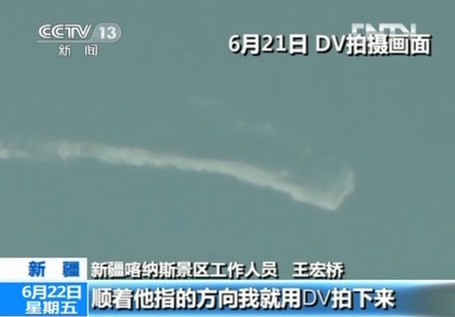 (新疆喀纳斯湖再现神秘“喀纳斯水怪”,图为现场拍摄到的画面。)