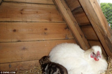 母猫竟替母鸡孵蛋