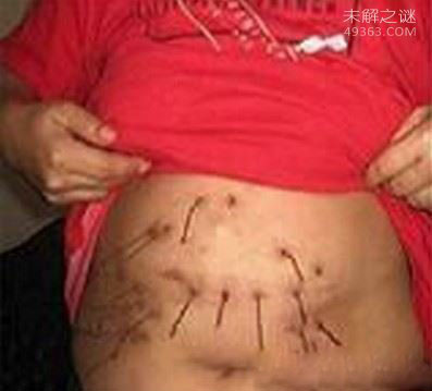 近日,台湾某节目飞往印尼拜访"铁丝女人",也拍下她的肚皮上插满一条条铁丝,以及医师拿出她皮肤下都是铁丝的X光片等画面;甚至还有一根经手术取出,已不能用"丝"来形容的"铁条"。"铁丝女人"努西达说,现在的她已放弃了再去追寻病因,只想平静的过日子,安心养病。