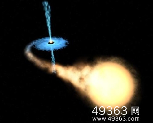 这幅图片展示了一个微类星体。微类星体据信是质量与恒星相当的小黑洞。如果掉入这个黑洞,你能够穿过黑洞的边界,也就是事件视界。即使尚未被巨大的引力碾碎,你也无法从这个黑洞的后部穿出,逃离升天。
