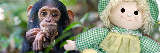 你也许认为,这是人类所特有的。令人惊讶的是,雌性黑猩猩也喜欢玩布娃娃。