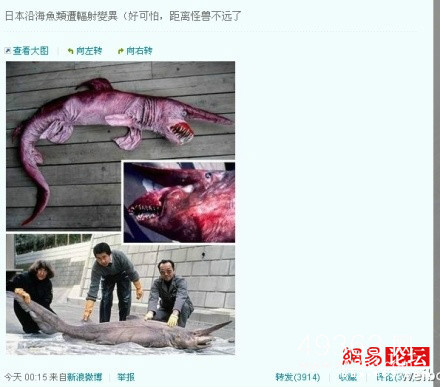 日本大地震引发核辐射危机,随后就出现这么一组图片,曾经在微博论坛上广为传播。现在你知道这种“变异鱼”是谁了吧。