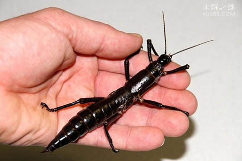 雌性豪勋爵岛竹节虫的成虫,大概和一个大人的手掌大小差不多。