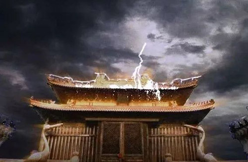 至于“雷火炼殿”,原因是武当山气候多变,云层常带大量电荷。金殿屹立峰巅,是一个庞大的金属导体。当带电的积雨云移来时,云层与金殿底部之间形成巨大的电势差,就会使空气电离,产生电弧,也就是闪电。强大的电弧使周围空气剧烈膨胀而爆炸,看似火球并伴有雷鸣;而且金殿与天柱峰合为一体,本身就是一个良好的放电通道,又巧妙地利用曲率不大的殿脊与脊饰物(龙、凤、马、鱼、狮),保证了出现炼殿奇观而又不被雷击。