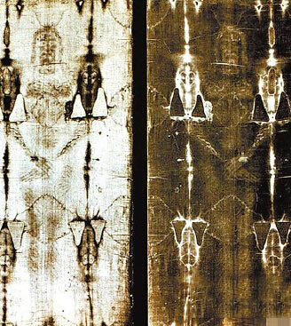 都灵裹尸布,是一块有人像面容的麻布。相传,当耶稣钉十字架去世之后,曾被此麻布包裹,因其血迹而清晰纪录耶稣当时的面容。