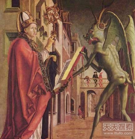 1475年的油画《圣·沃尔夫冈与恶魔》
