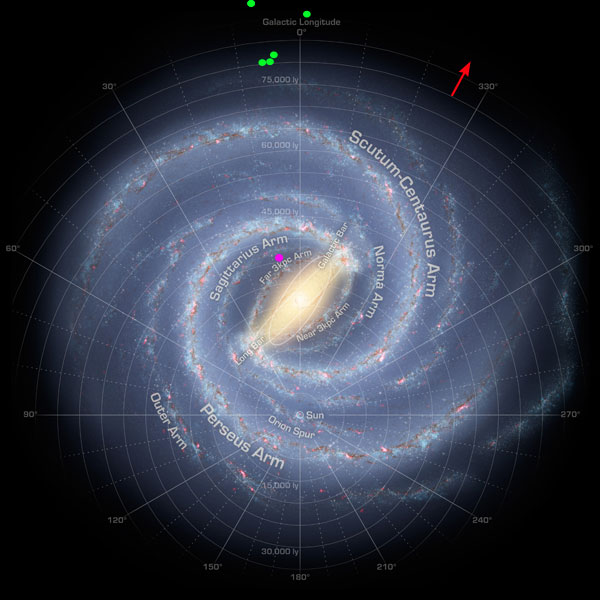 银河系相当巨大,在其所处星系群中列居第二。它主要由质量和年龄不尽相同的数以千亿计的恒星和星际介质(气体和尘埃)所组成。它们大都密集地分布在银河系对称平面附近,其余部分则散布在银盘上下近于球状的银晕里。