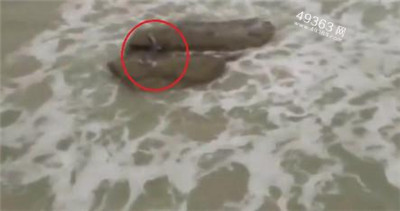 从这位游客的视频中,我们可以看到一个类似美人鱼的生物正在海边的岩石上趴着,似乎是在享受着阳光和海风。